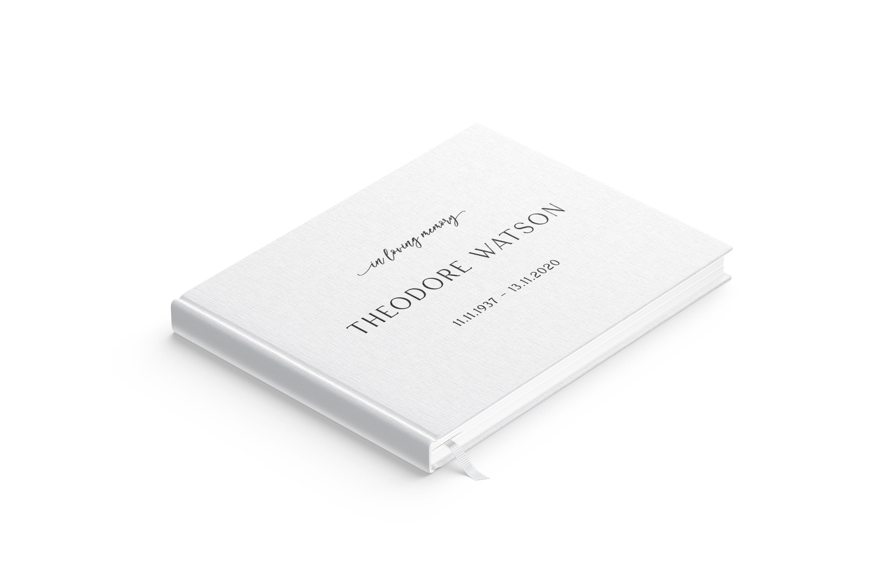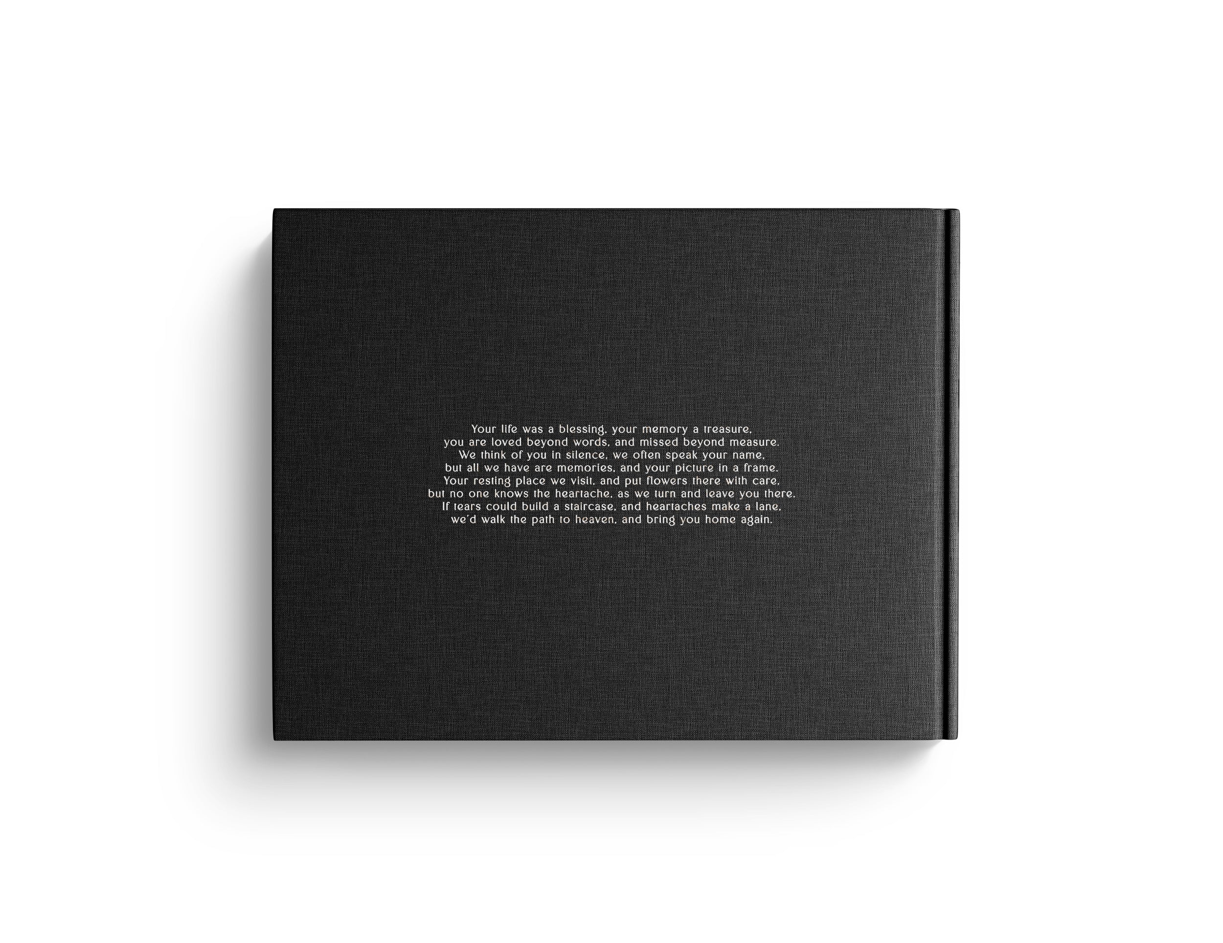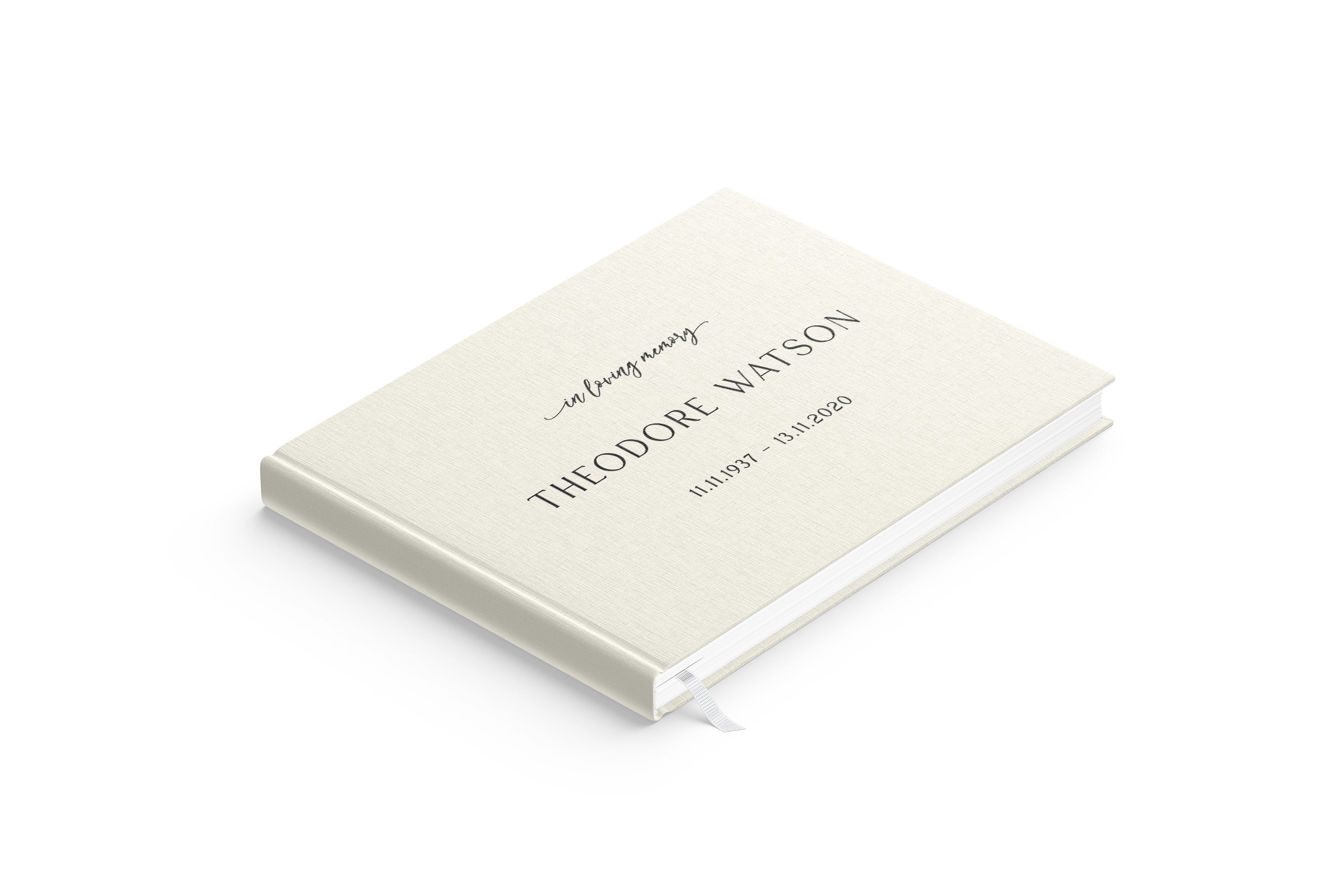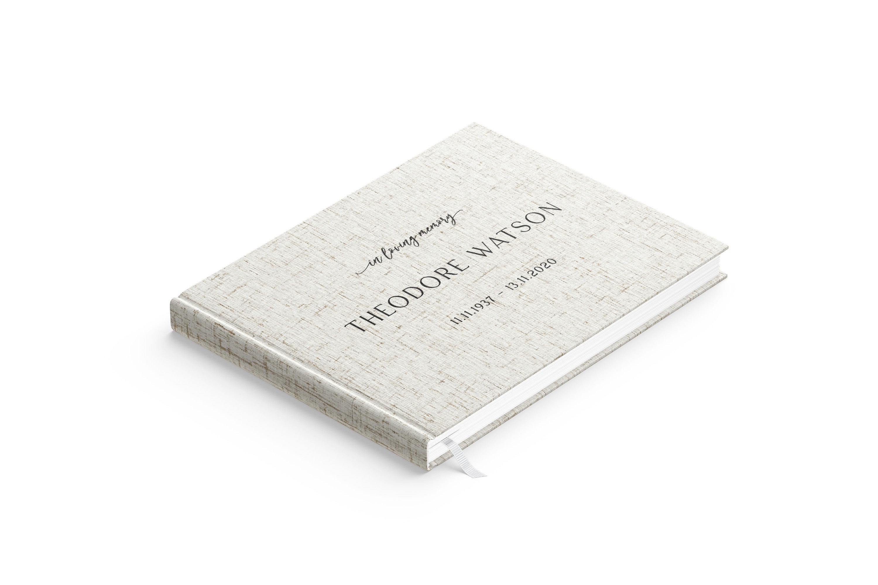 Introducing our bespoke linen funeral guest book, a meaningful addition to commemorate the life of your loved one. This tasteful guest book is designed with a classic linen hardcover, exuding a timeless and dignified look suitable for any memorial occasion.