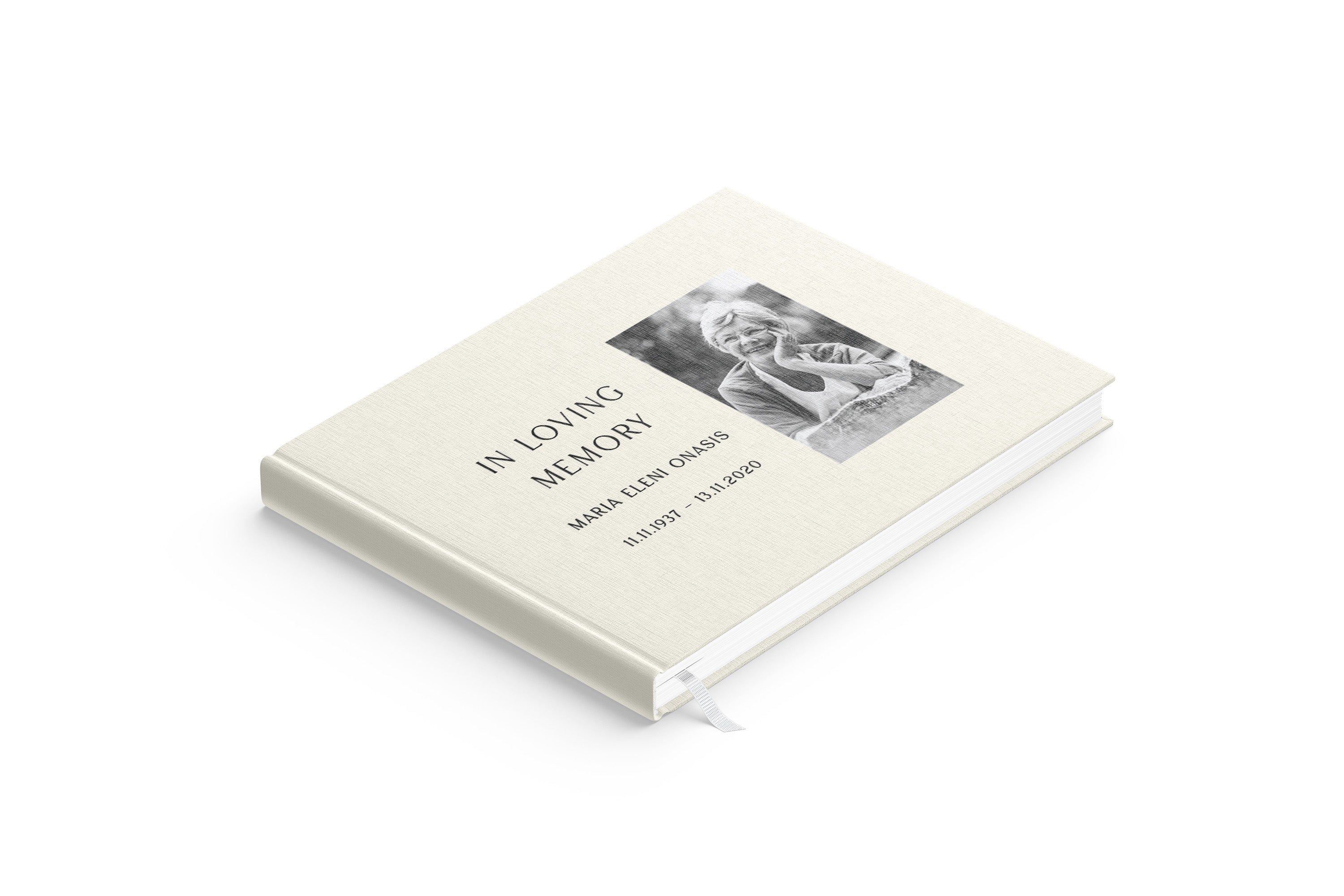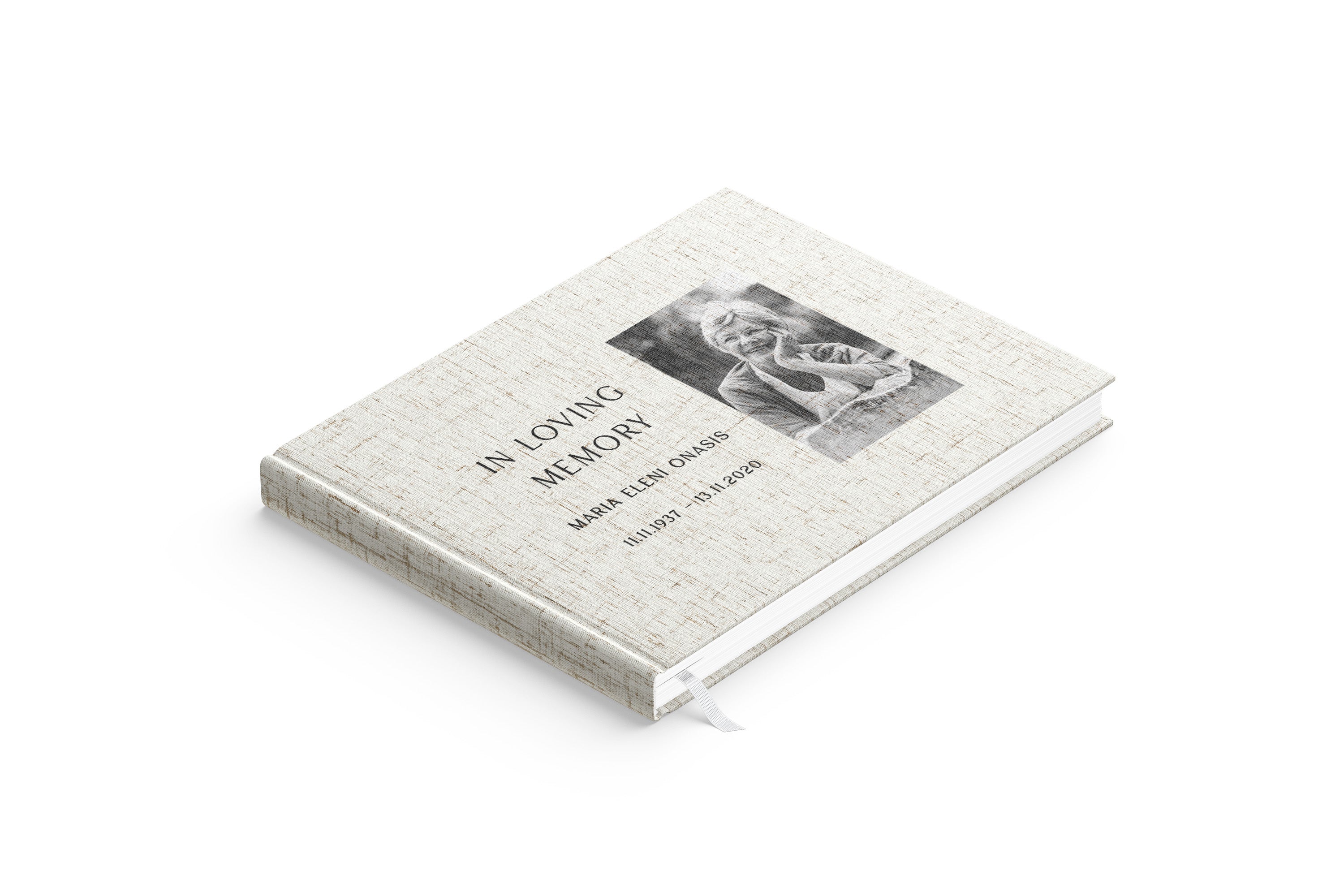 Introducing our bespoke linen funeral guest book, a meaningful addition to commemorate the life of your loved one. This tasteful guest book is designed with a classic linen hardcover, exuding a timeless and dignified look suitable for any memorial occasion.