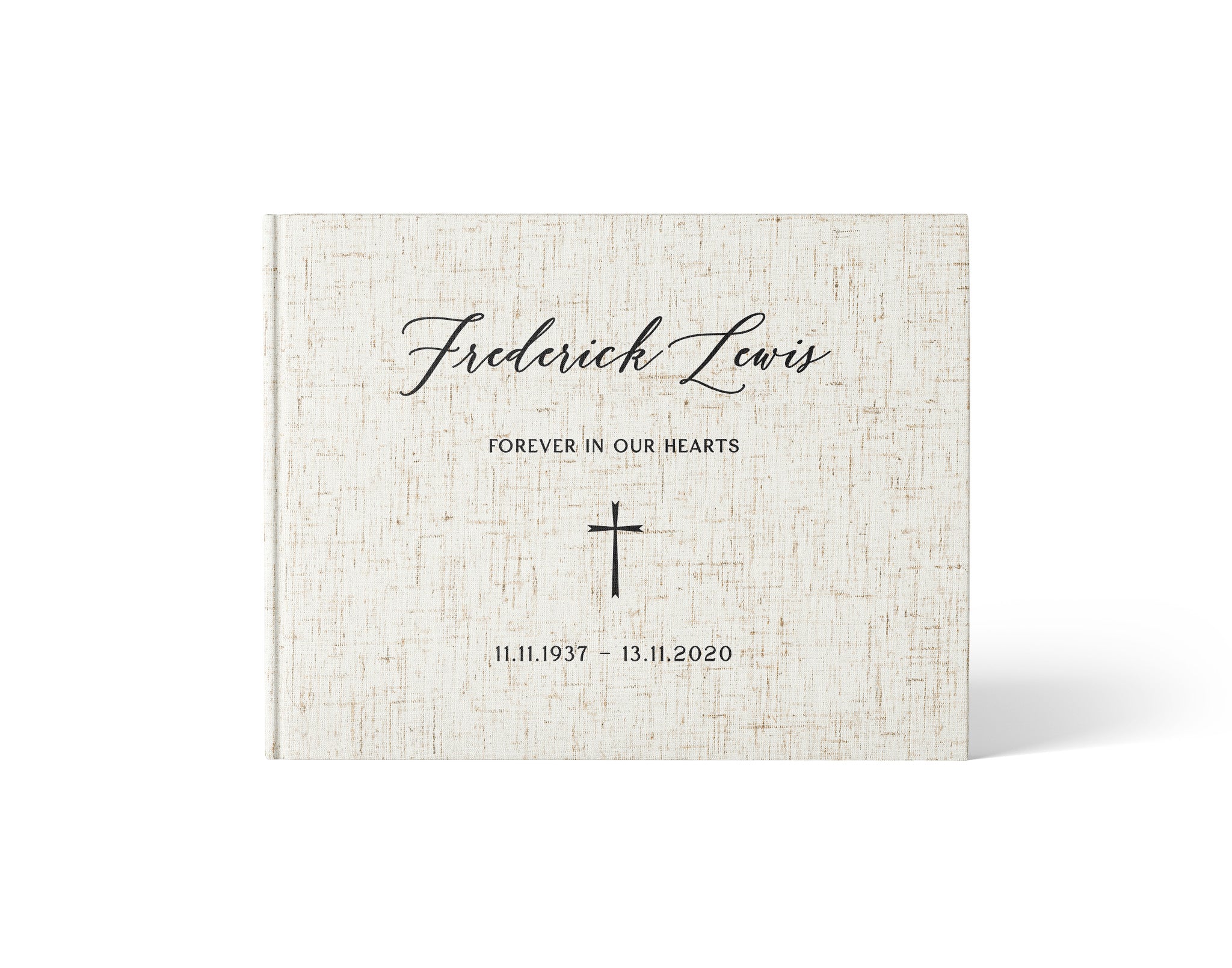 Introducing our bespoke linen funeral guest book, a meaningful addition to commemorate the life of your loved one. This tasteful guest book is designed with a classic linen hardcover, exuding a timeless and dignified look suitable for any memorial occasion.