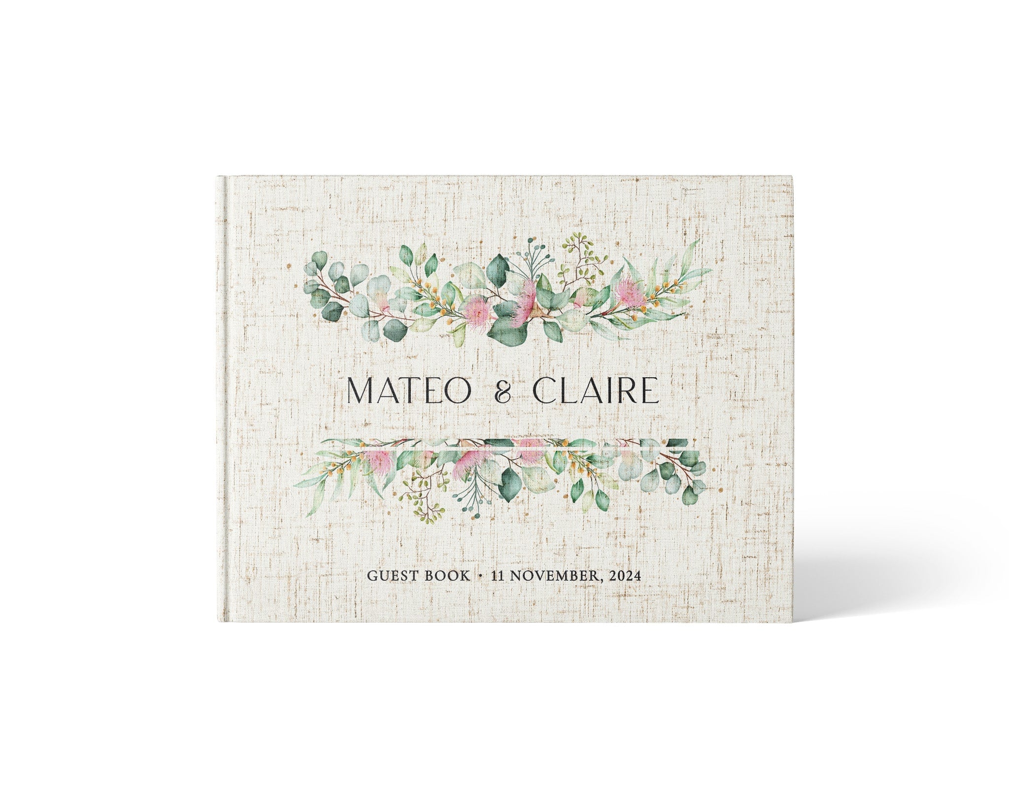 Introducing our bespoke linen wedding guest book, the perfect addition to your special day. This elegant guest book is designed with a classic linen hardcover, giving it a timeless and sophisticated look that will complement any wedding theme.
